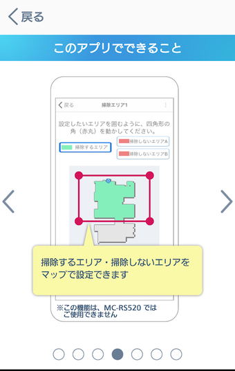 RULOナビ Wi-Fi机器人吸尘器的远程控制和多种清洁模式,需要Android 9.0或更高版本。当前版本为5.00.01。